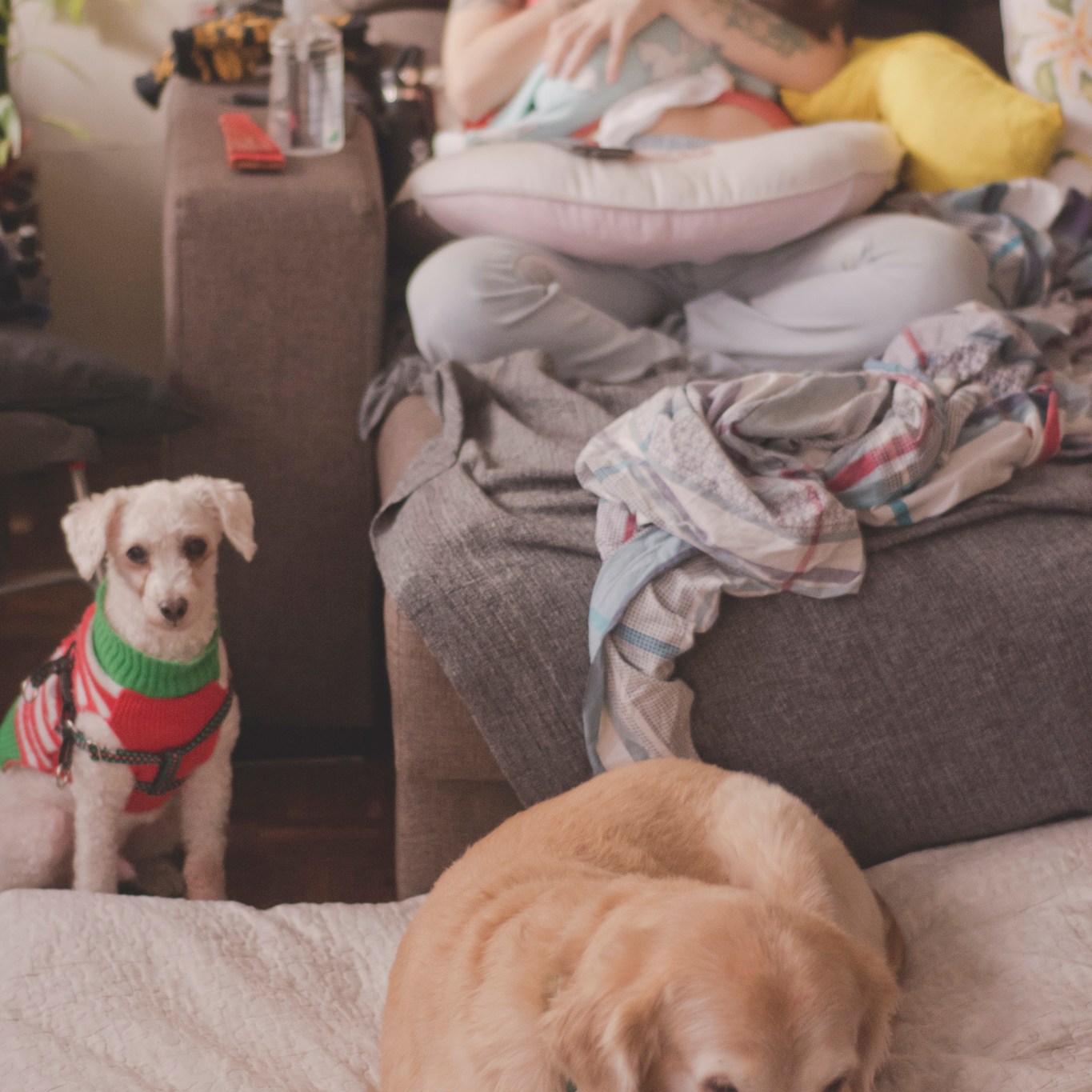 Como um diário visual da experiência de gestar durante uma pandemia, esta proposta de registro do cotidiano surgiu em meio às tantas privações que o isolamento nos impõe em um momento tão singular de nossas vidas. Resgatamos um exercício ao qual já nos dedicamos uma outra vez, em um outro começo no curso da nossa trajetória juntos: a documentação do nosso primeiro ano morando sob o mesmo teto, vivendo como uma família e tentando construir um ninho amoroso para nós.